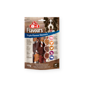 Die Triple Flavour Skewers sind extra fleischig und enthalten fünf verschiedene Geschmacksrichtungen. Sie wurden speziell entwickelt, um Ihren Hund zu beschäftigen und zu unterhalten. Der ideale Snack zur Belohnung und Beschäftigung für Hunde aller Größen.